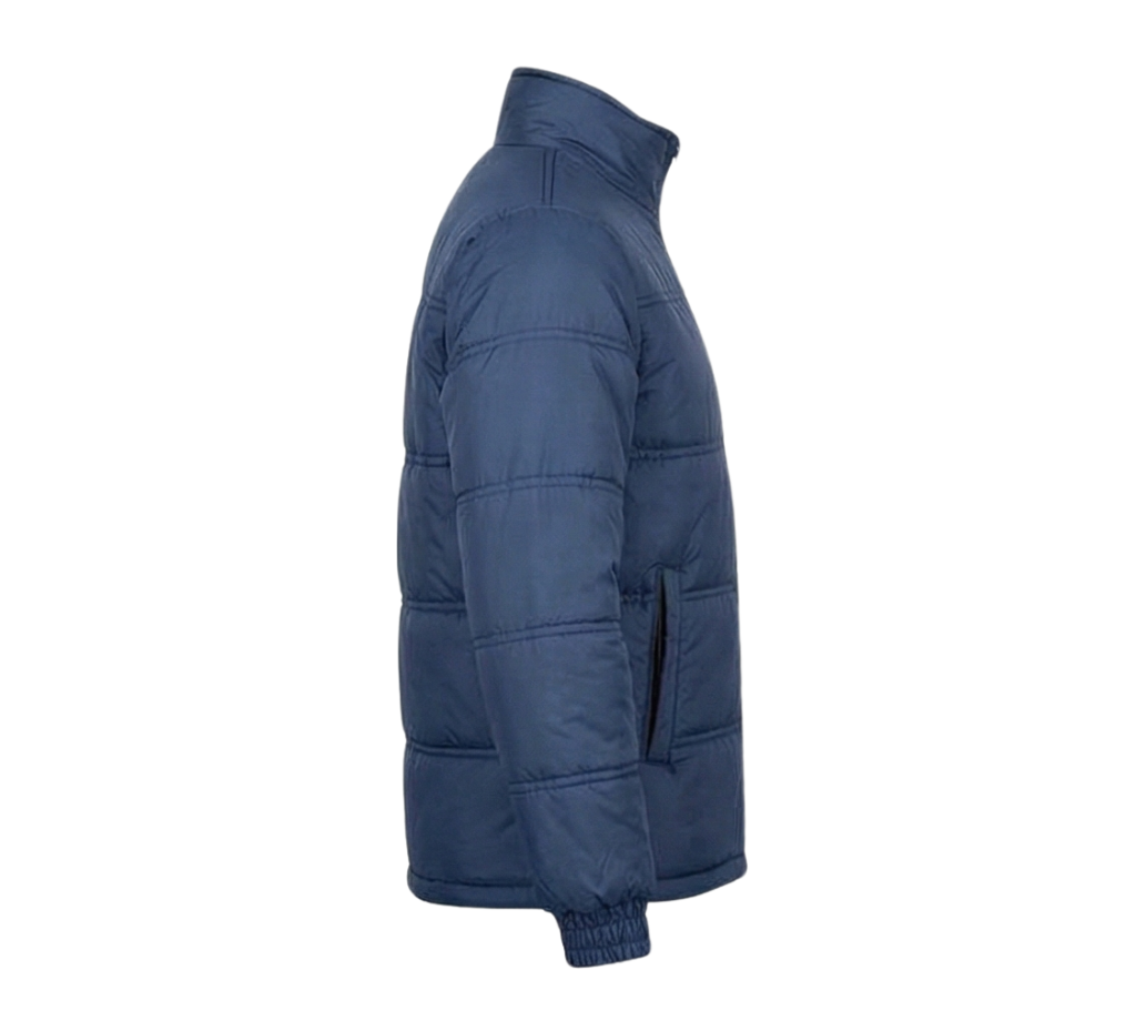 The high-neck collar offers added protection against cold winds, while the full-length YKK zipper closure ensures durability and smooth wear. Elasticated cuffs help retain warmth, and the two zippered side pockets provide secure storage for essentials. Finished with a clean, modern look, this jacket is built for both style and practicality.
